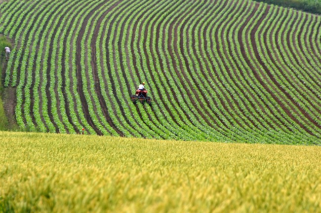 丘は農地です。長い7月の日中は終日農作業の光景が観られます。こうして夏雲と青空が最後まで見られまかった「出会いの丘」でした。