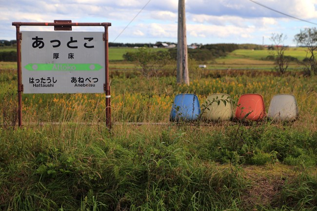 ここまで来たら、一路根室へ44号線。途中、思い出の駅「厚床」に立ち寄り。