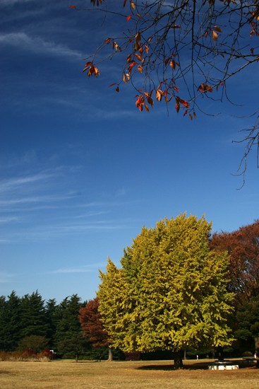 芝生広場にある、形の良い銀杏は絵になります
