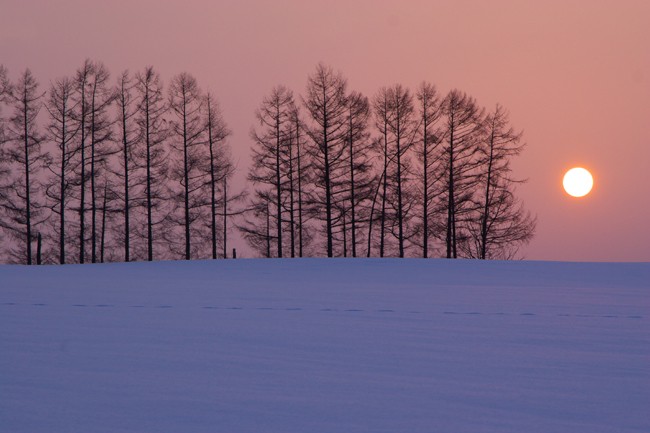 すでに太陽は赤いお月様状態。雲はないけどおもしろい夕景が撮れそうな展開になってきました。曇り予報だったので、これだけの夕陽が拝めれば言うことなしです <EOS Kiss Digital Canon EF24-105mm f4L IS USM>