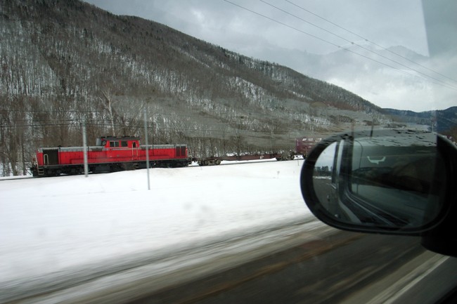 ゆっくり走る貨物列車には、普通に走ってもすぐに追いつきます。