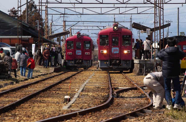 沢辺駅では、貨物と上下普通列車の交換シーン。どこから集まってきたのか??大勢の人。しかし、和やかな激パ。ケイタイや三脚なしが多かったです。こんなに賑やかな沢辺も、珍しい光景 EOS 20D Canon EF70-200mm f4L USM