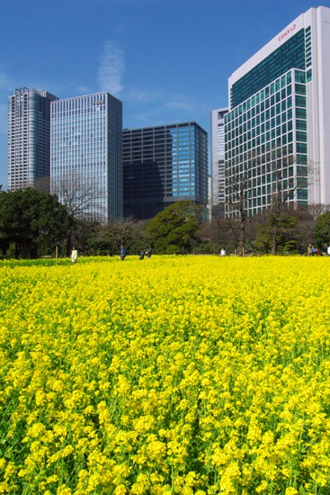 浜離宮。菜の花畑がちょうど見頃を迎えていました。