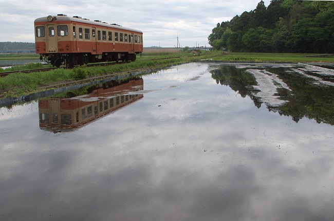 雨が上がったので、中根に向う。どんより曇り空が水に映ります。