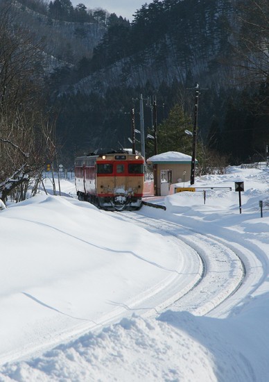 早朝あけぼので大館に着き、花輪線に乗り継いで、土深井で降り、駅付近でお手軽に最初に撮った1枚。唯一の比内での快晴写真でもあった。