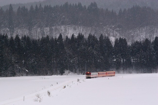 見通しのよい、いいポイントであった。列車通過時に雪が激しくなり、遠方が霞んだのがちょっと残念