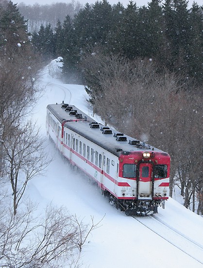 サミットから下ってきます。晴天だと、退いて前森山バック。南部花輪らしいダイナミックな構図になります。一週間後(晴天)それを試みるも、駐車スペースでうたた寝しているうちに、快速八幡平は行ってしまった‥