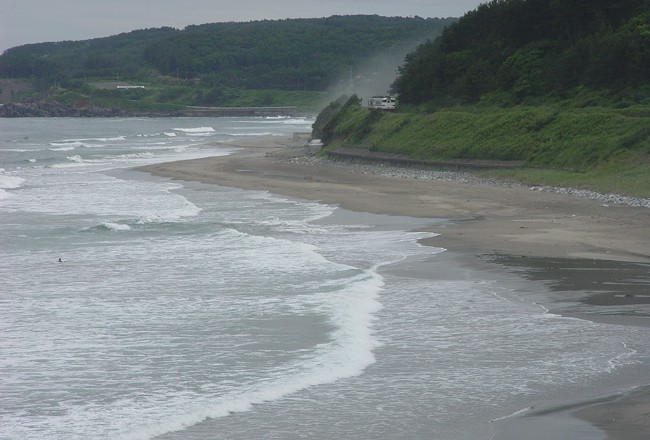 熊笹をかき分けて進んだ先には、北の太平洋と岬めぐりの鉄路が見えた