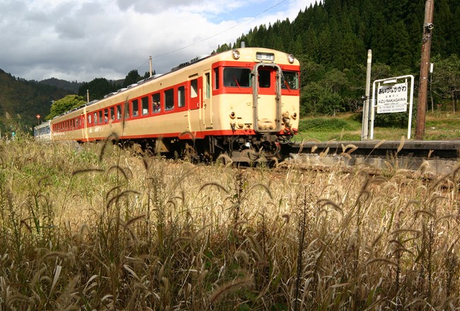 行楽シーズンにいつも走るこの臨時列車は、三両目新潟色をいかに隠すかがポイントです