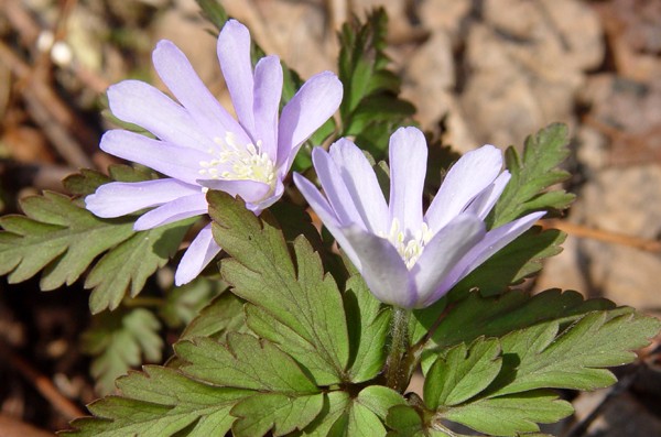 沿線は白、薄紫のアズマイチゲが満開。杉林には天然のカタクリも見られる。鉄人も気づいてください、越後の春