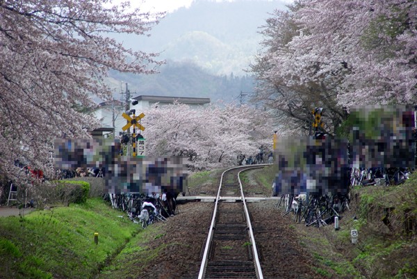 咲花の「桜の回廊」はジャスト満開。ここで撮りたいと思うのは皆同じ。迷ったが、私はここをパスし鹿瀬に向う