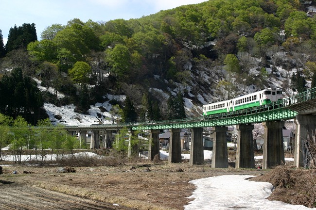 423D。残雪と新緑とを同時に見られるのが珍しい。ようやく日が差してきた
