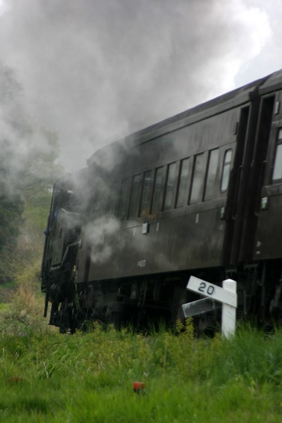 小川郷駅前の旅館兼食堂で腹ごしらえ後、ロケハンしながら決めた場所。列車通過まで1時間以上ある。 じっくり場所選び。私は後追いのカーブを望遠で狙うポジション。しかし、直前で激しい雨、シャッターチャンスも逃す