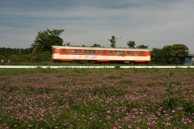 ガードレールが気になったが、車中で見つけた蓮華畑。ちょっと盛り過ぎだったが、この日、撮りたかったシーンの1つ