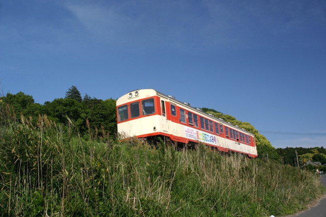 霞ヶ浦の夕日ギラギラとともに、鹿鉄の定番「築堤&青空」、いつもこういうシーンを撮ってしまう。