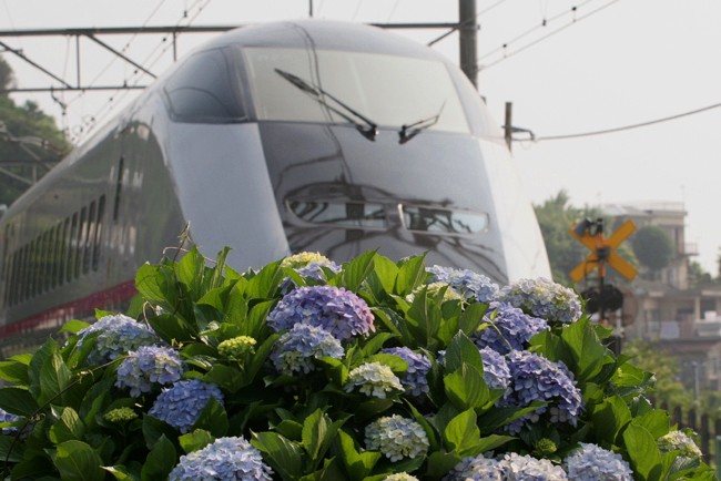 突然やってきた「新幹線こまち輸送」。とっさの後追い。ちゃんと調べておけばよかったな (米神踏切)