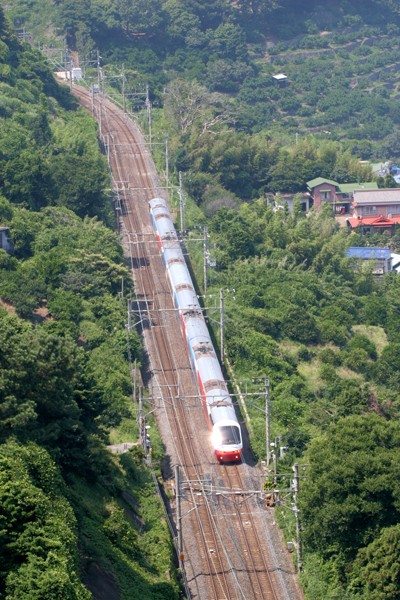 ここでZINさんと合流。伊豆急アルファリゾート21がやってきた (江之浦)