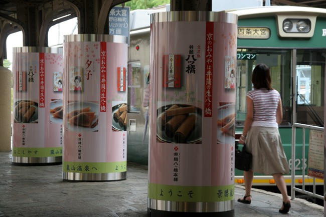 車両は小奇麗になったが、カラーリングは往時を偲ばせる、嵐電・嵐山駅