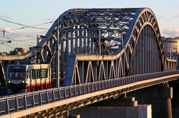 西日を浴びて輝く忠節橋 <2005.1.1>