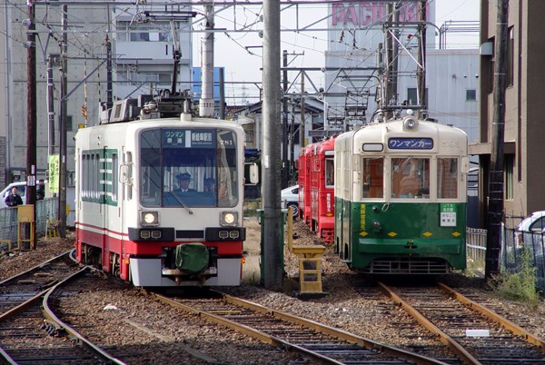 塗装変更されたモ590、今日は臨時で市内線に <2005.1.16 撮影地:忠節駅>