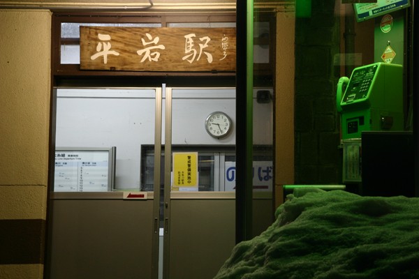 風呂に入り、宴会も終了後、はかったように駅に行き、最終を撮る (夜の平岩駅)