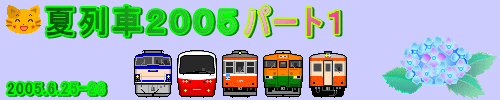 年初「白銀の大糸線」でスタートした当撮影記シリーズも季節は巡り「待望の夏」を迎えた。夏場の炎天下での撮影は難行苦行だが、ポイントに辿り着いたときは噴出す汗に夏草香る涼風が心地よい。日が長いから「朝から晩まで」存分に撮れる。煌めく海、ダイナミックな夏雲、原色の花々。今年の夏はどこで何を撮ろうか‥。梅雨の中休みの先週末は、土曜は2時起きで根府川に居座りブルトレ総撮りの15時間耐久、翌日曜も家でじっとできず国鉄色が走る湊線で夕刻まで粘る。こんな具合で、アグレッシブに「2005年・私の夏」が始まった。 |