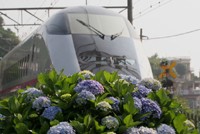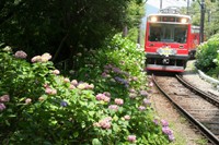 トップライトの時間帯は、陽射しの強い海岸沿いを避け、箱根でグリーンシャワーを!と、紫陽花咲く登山鉄道へ。八分咲きの大平台はカメラマン多数。「鉄道好きのご主人と、花好きの奥様」間で合意形成となったと思しき熟年カップルが目に付き、バリバリ鉄道撮影地とはちょっと異なるほんわかムード。しかし、ここも暑かった。ただ撮っただけという数枚。 |