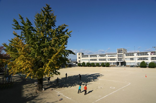 卒業した小学校の校庭。数十年ぶりかな。大銀杏、意外に小さいなぁ