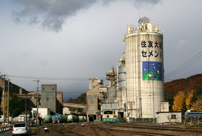 貨物専用線に沿って約1キロ先に、セメント工場がある