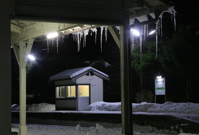 岩泉線・岩手刈屋 shunさんと合流し、R106を東へ。途中「区界高原」では日中で気温マイナス9度。立ち寄った陸中川井は5分と外に居られないほどの寒さであり、明らかにマイナス10度以下であった。そして、久しぶりの岩泉線。いつもの刈屋駅である。